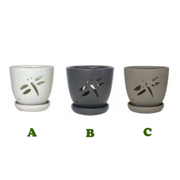 Dragonfly Orchid Pot w/ Saucer, 7 1/4 x 6$19.99Border Concepts Dragonfly Orchid Pot with Saucer. Assorted - Sold Separately. Ceramic Pots, perfectly sized for Orchids. 7 1/4" x 6". This is an assortment, and the varieties available may vary. In the comment section of your shopping cart, let us know which one you'd like, and we'll do our best to accommodate you. | Dragonfly Orchid Pot w/ Saucer, 5 1/2 x 5 1/4$12.99Border Concepts Dragonfly Orchid Pot with Saucer. Assorted - Sold Separately. Ceramic Pots, perfectly sized for Orchids. 5 1/2 x 5 1/4 . This is an assortment, and the varieties available may vary. In the comment section of your shopping cart, let us know which one you'd like, and we'll do our best to accommodate you. | BUTTERFLY ORCHID POT 8" MATT WHT$25.99BUTTERFLY ORCHID POT 8" MATT WHT |